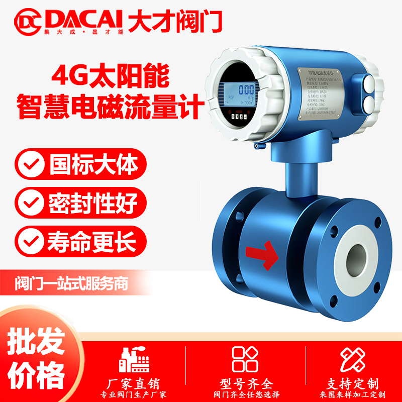 大才阀门DACAI牌的大才太阳能供电电磁流量计自来水农田灌溉水无线远传风光互补阀产品:估价:1500.00,规格:50,产品系列编号:50 发布日期:2025-3-18